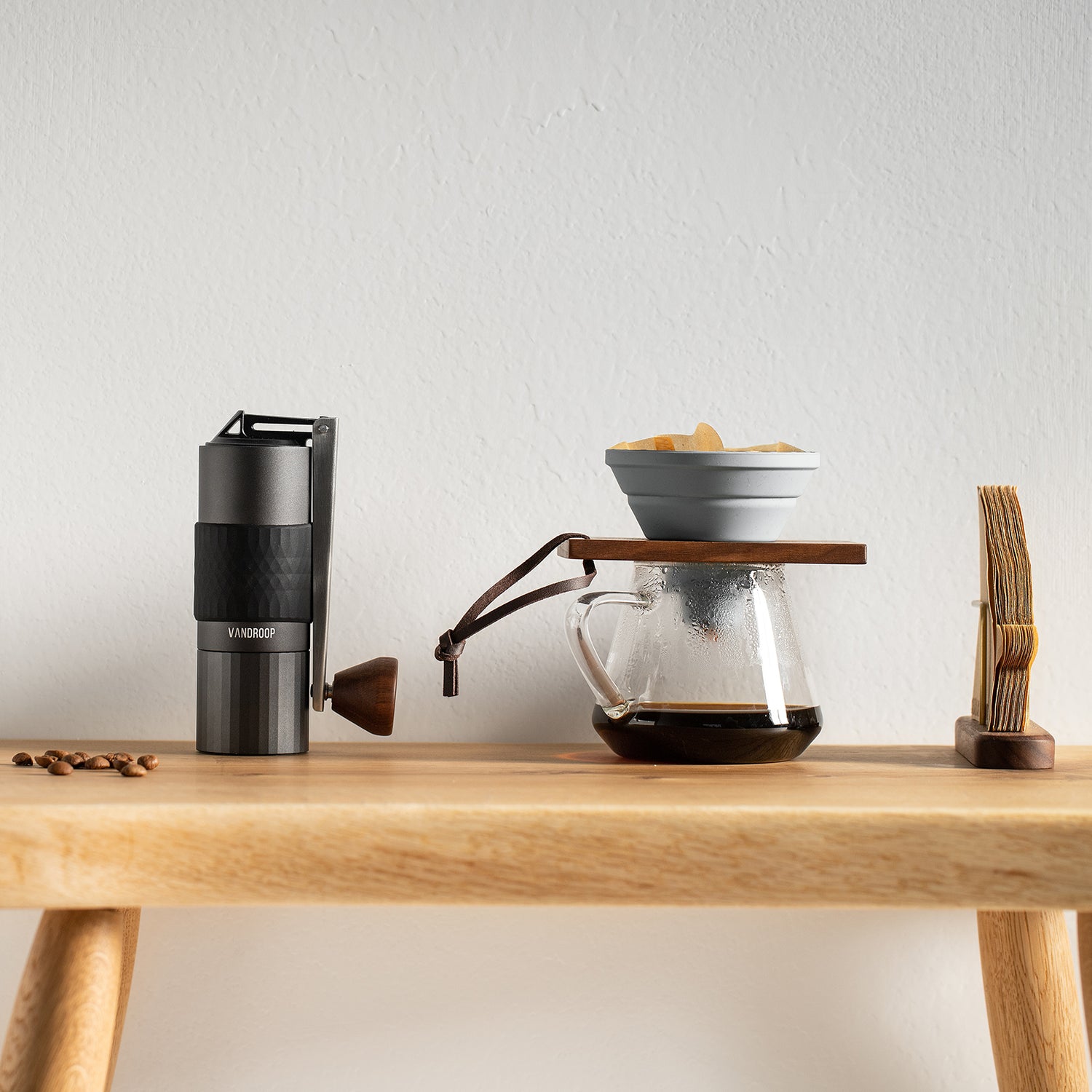 Vandroop offers you the coolest coffee experience. Our thoughtfully designed ultra-portable coffee grinder and pour over coffee set allow you to effortlessly enjoy freshly coffee anywhere,just like always carrying a barista with a cable!