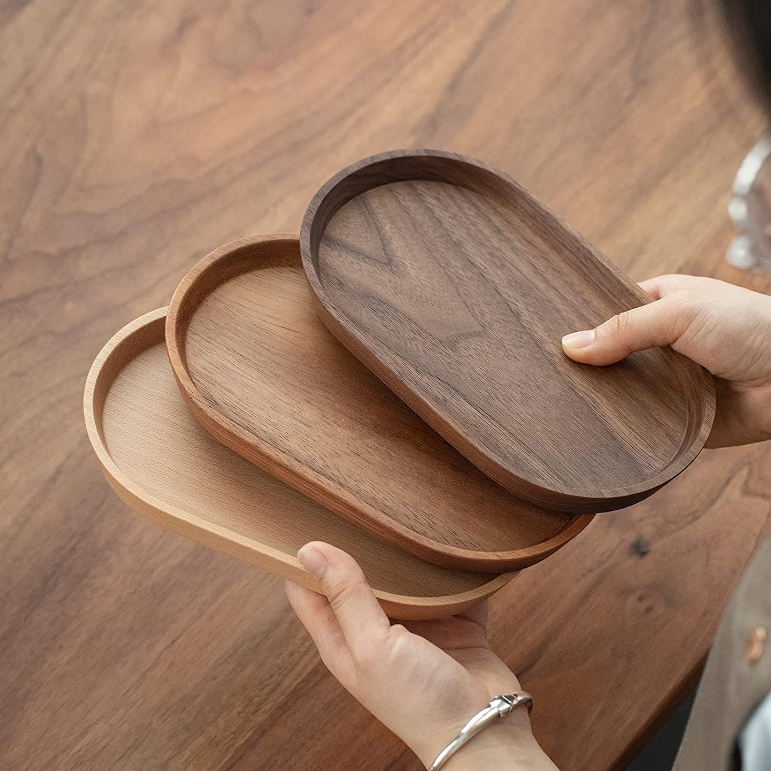 - 多用途:サービス、ディスプレイ、保管、装飾、整理の機能が統合されています。料理を盛り付けるシャルキュトリーボードとして、また商品を陳列するディスプレイトレイとして、高級感のある木の色合いが料理や商品の質感を引き立てます。保管と整理のためのトレイとして機能し、スペースを迅速かつ効率的に整理するのに役立ちます。コーヒーや紅茶のカップトレイとしてもお使いいただけます。