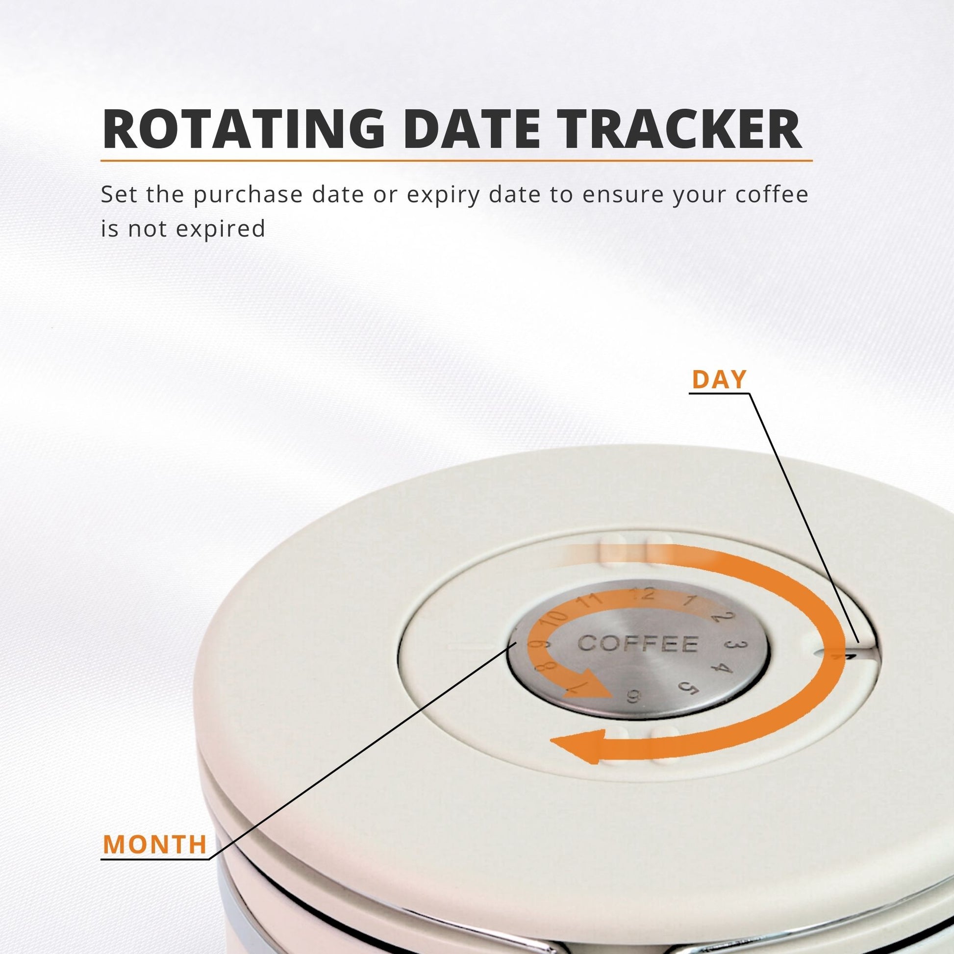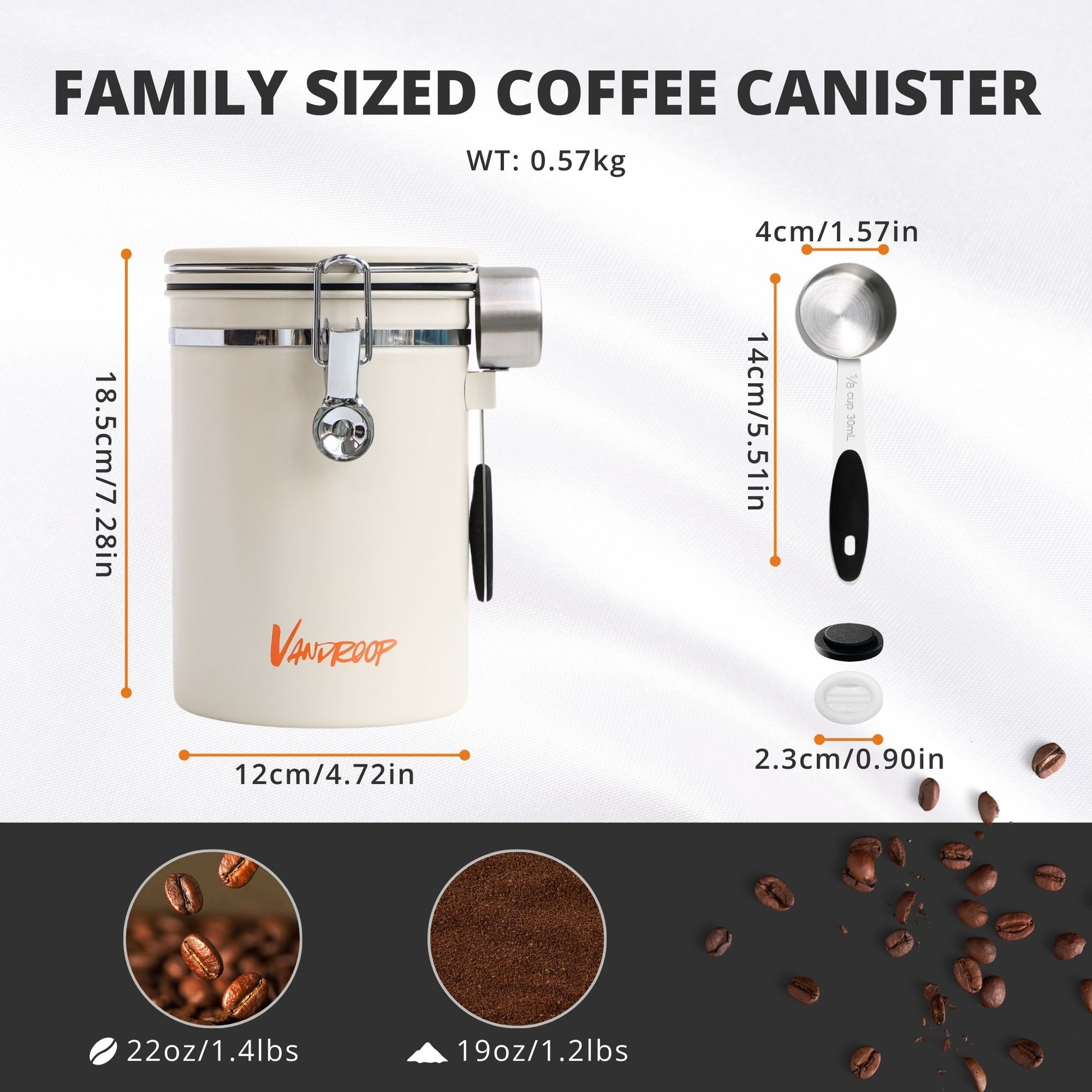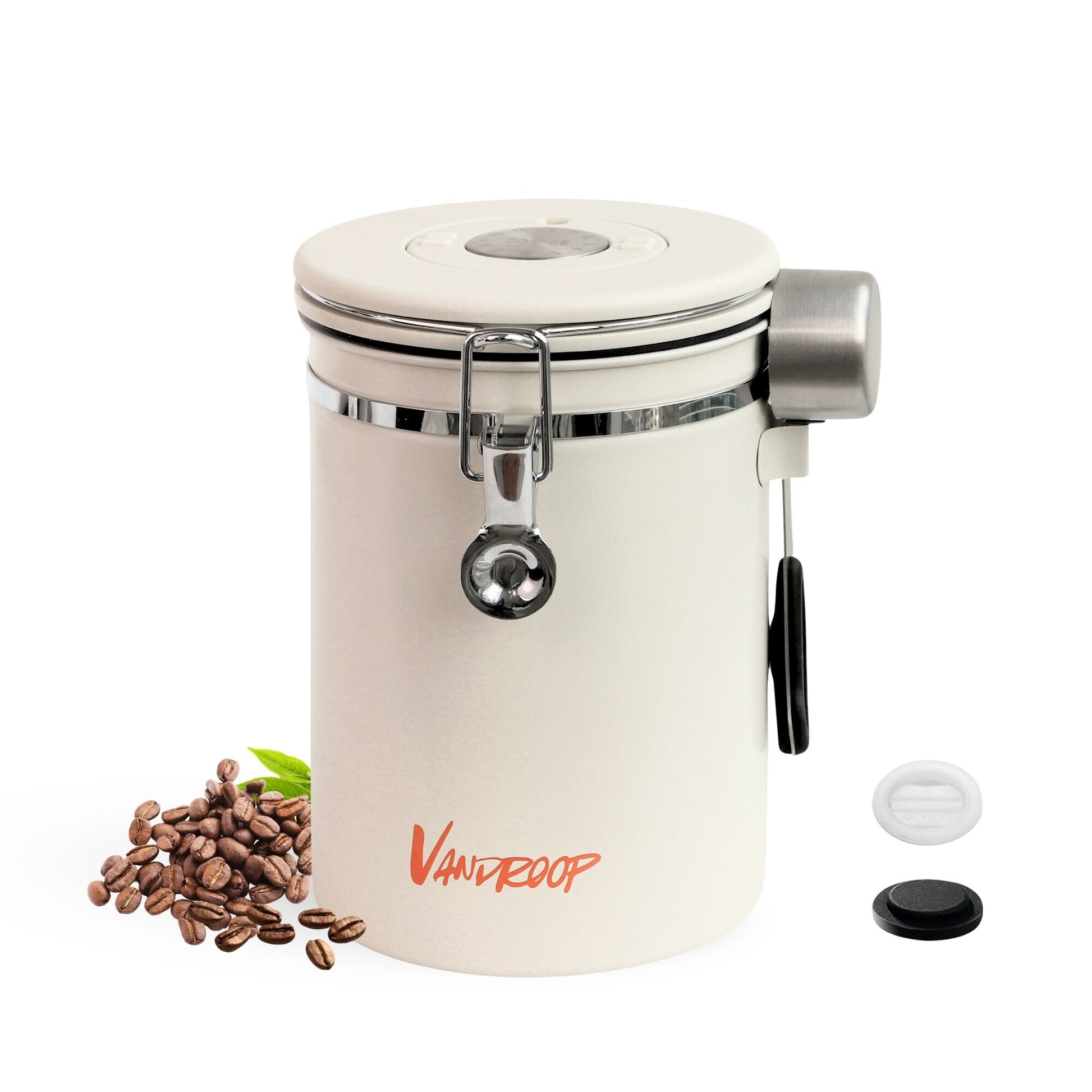 Vandroop 22oz Coffee Canister with Date Tracker & Measuring Scoop(Cream White)