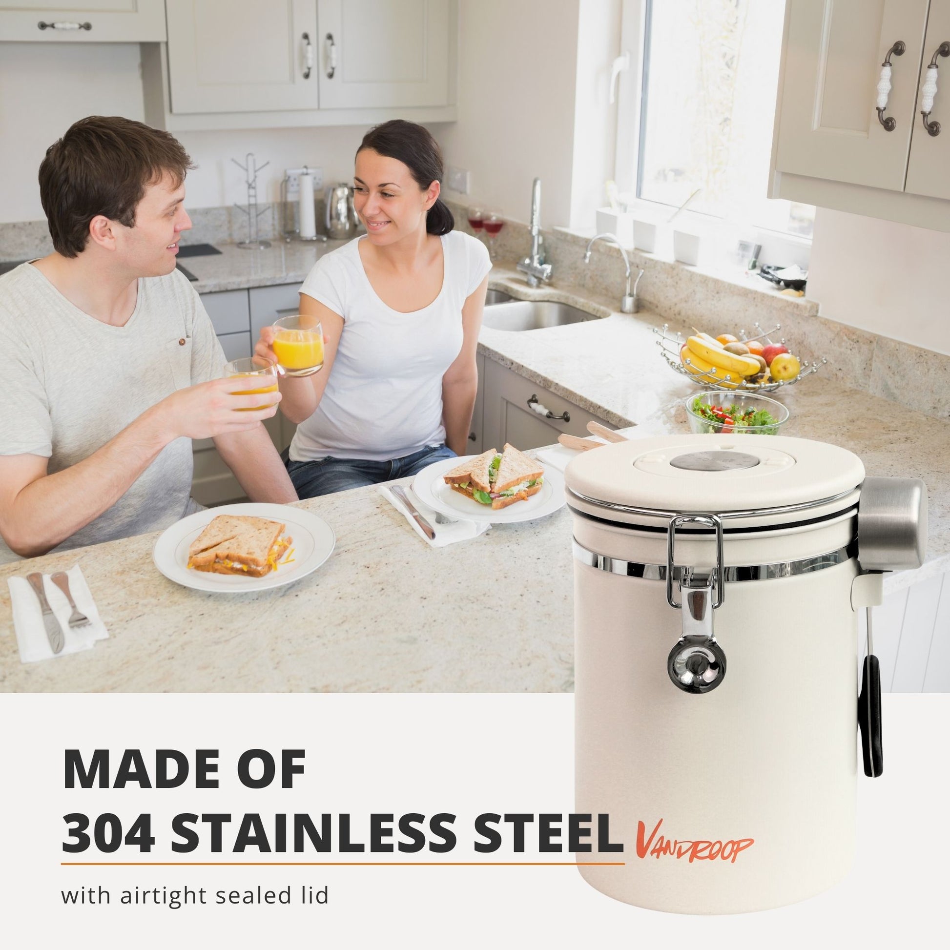 - High Quality : Vandroop 1800ml coffee bean storage canister is made of high quality 304 stainless steel to ensure durability and safety. Whether it's coffee beans or other food products, it can be effectively protected from metal odor on the ingredients.