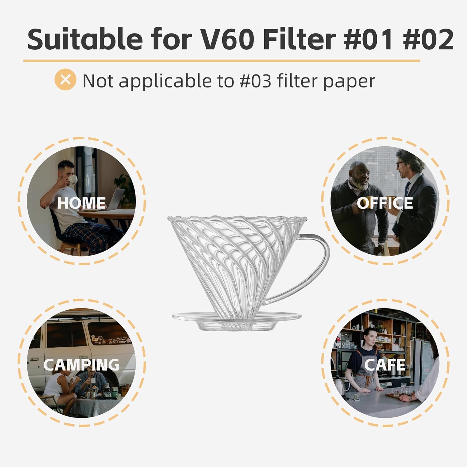 - Easy to Use: This 2 in 1 set includes V60 glass coffee dripper and 600ml coffee server. You can brew delicious coffee anywhere and anytime for only several minutes, which will bring you unique coffee extraction experience. Enjoy the fun of hand-made coffee.