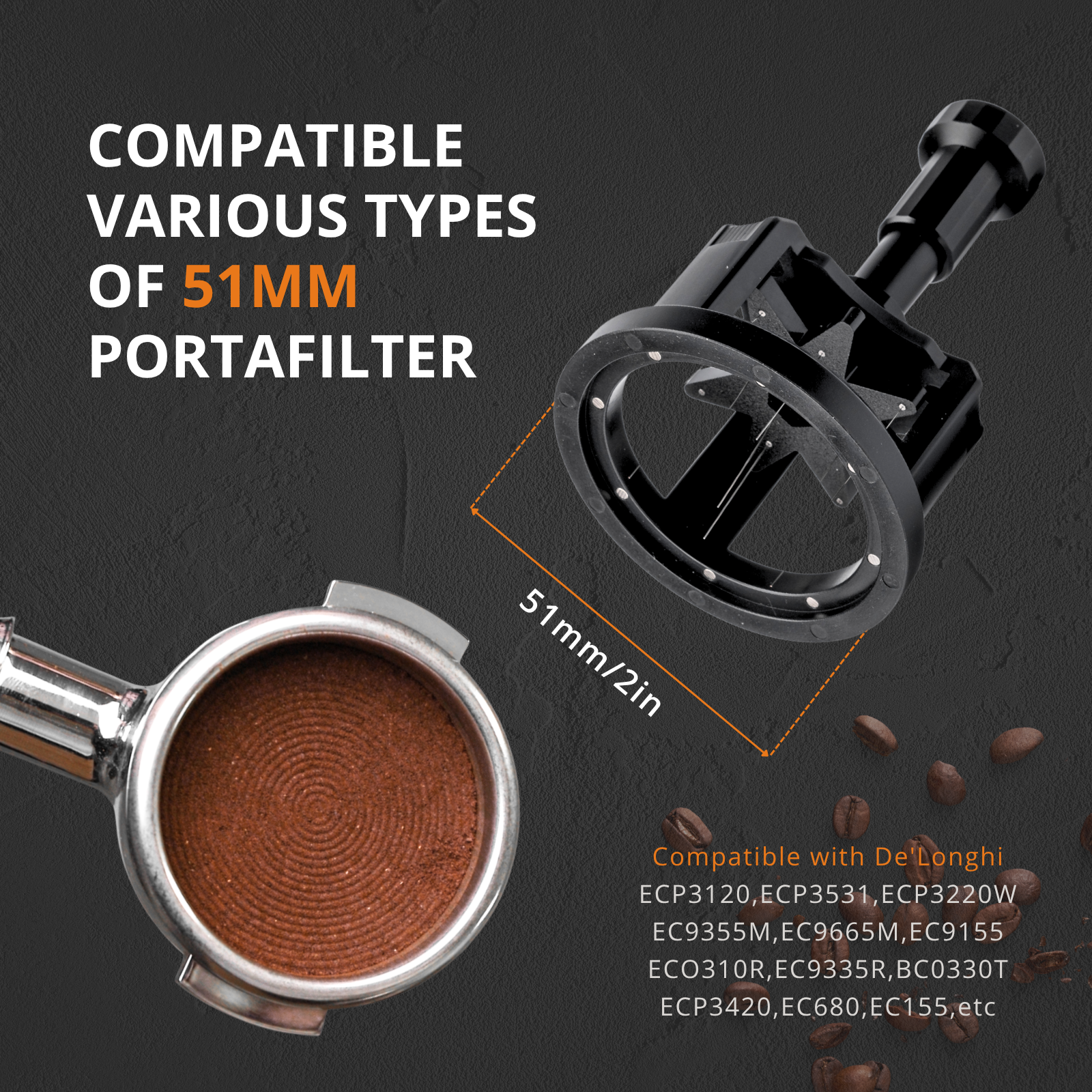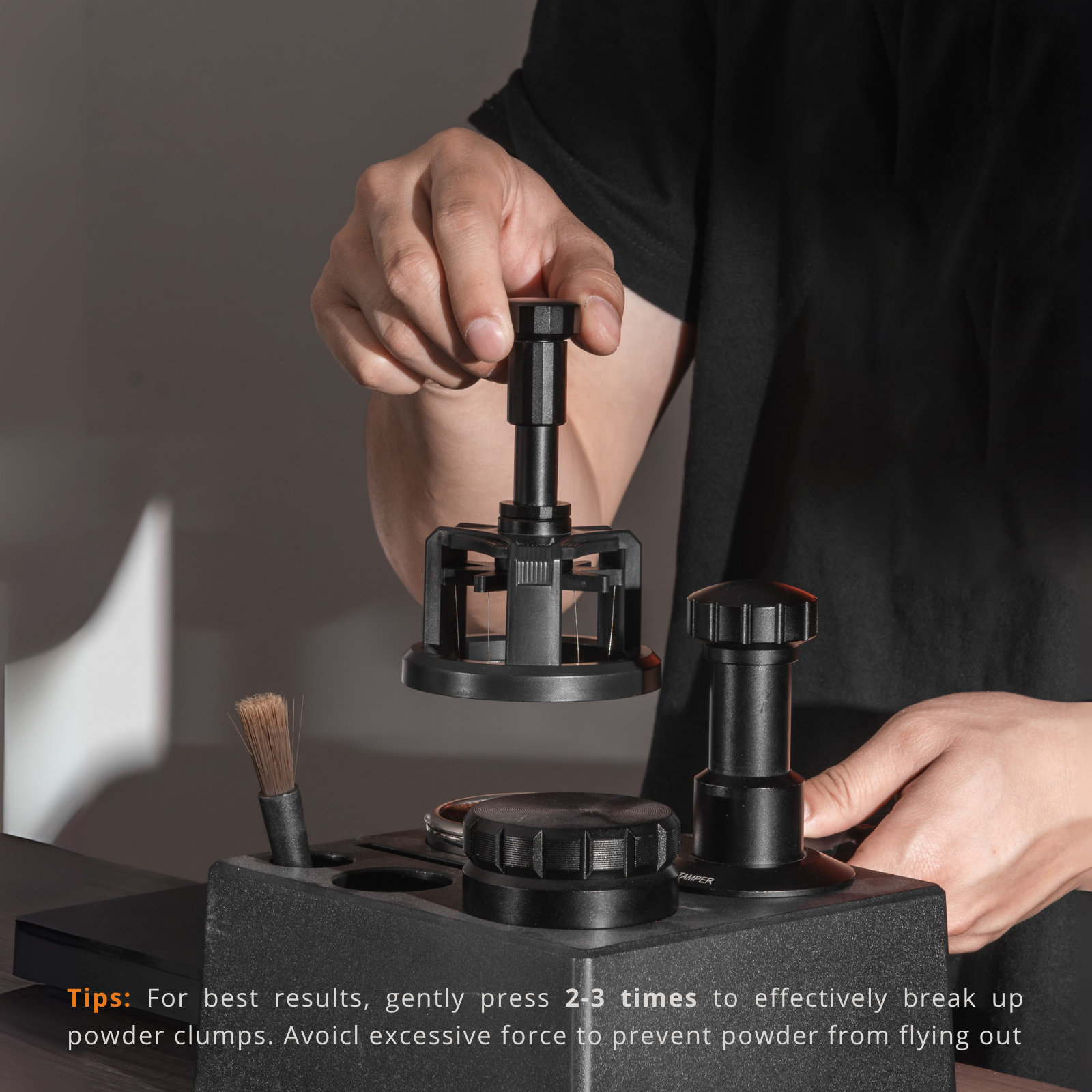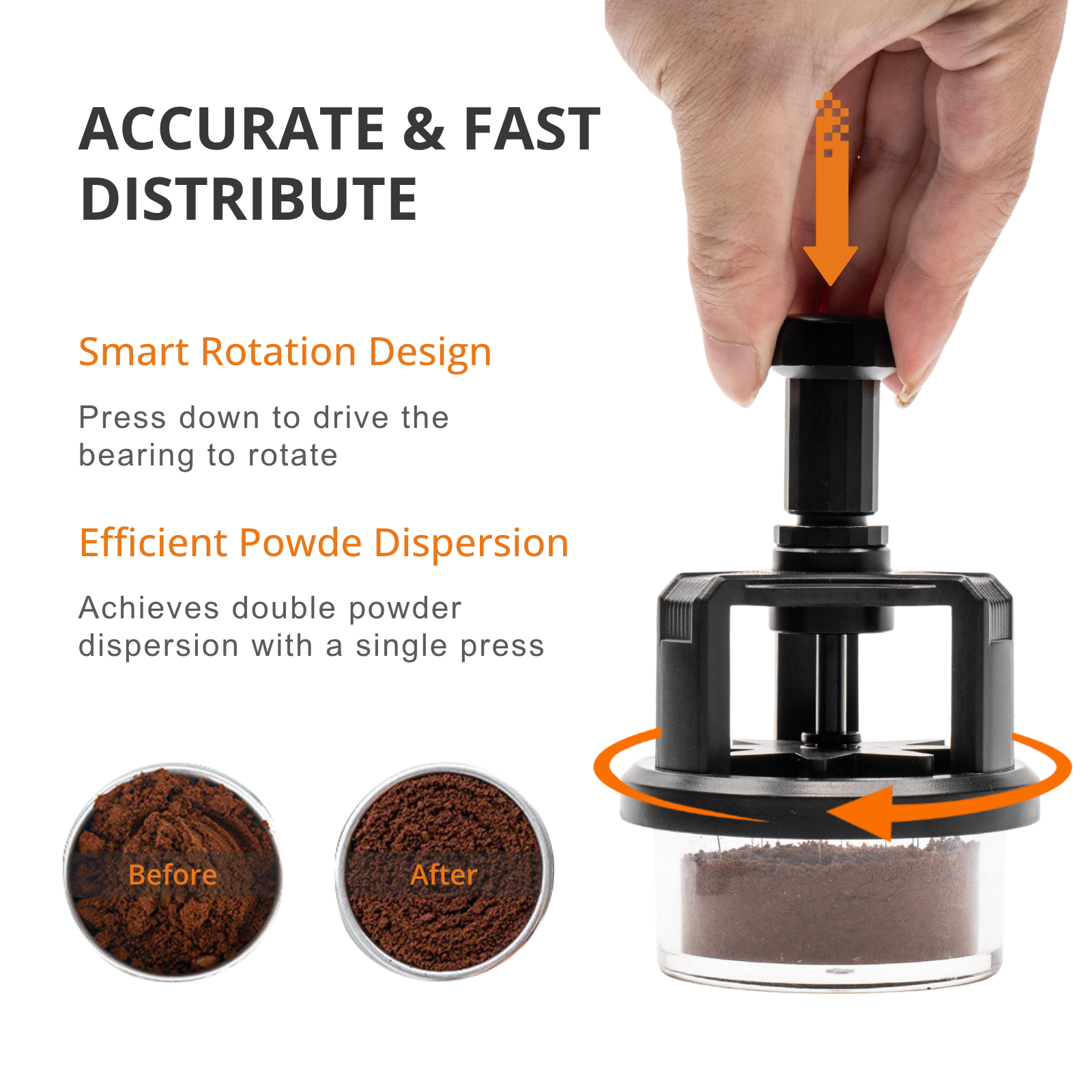- Semi-Automatic WDT Tool: Activate the screw-driven mechanism by pressing the handle—our one-way bearing rotates smoothly, guiding 9 ultra-fine needles to break clumps and evenly distribute coffee grounds. This semi-automatic design mimics professional barista techniques, ensuring optimal extraction consistency for richer, balanced espresso shots