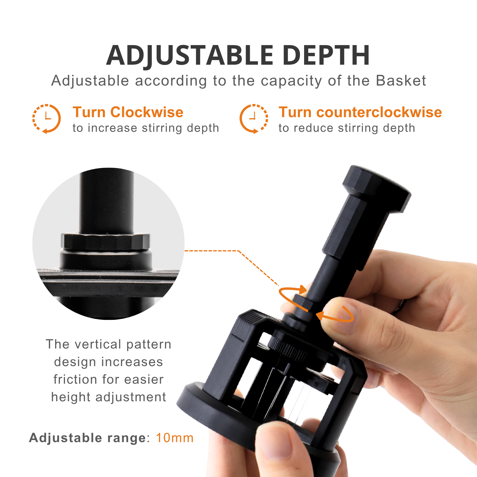 - Adjustable Depth for Universal Compatibility: Customize needle depth in seconds via the ergonomic adjustment ring. Perfectly adapts to baskets of varying heights, from shallow single-dose to deep triple-shot setups. No need for multiple tools—one WDT fits all